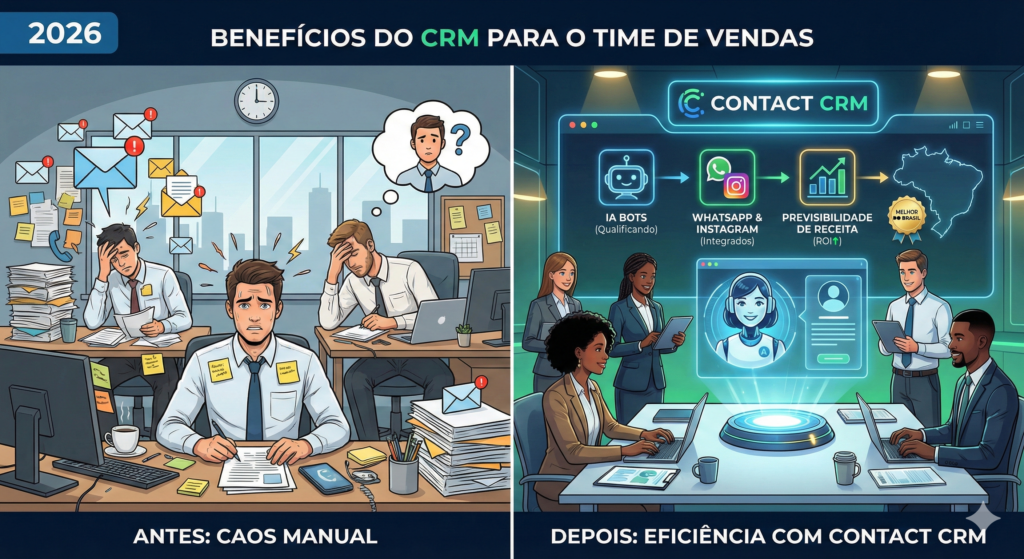 Se o seu time de vendas ainda depende de planilhas de Excel, anotações em papel ou o “feeling” do vendedor, você está deixando dinheiro na mesa. Neste artigo, vamos explorar profundamente os benefícios de adotar um CRM e por que o Contact CRM se consolidou como a ferramenta definitiva para o mercado brasileiro.